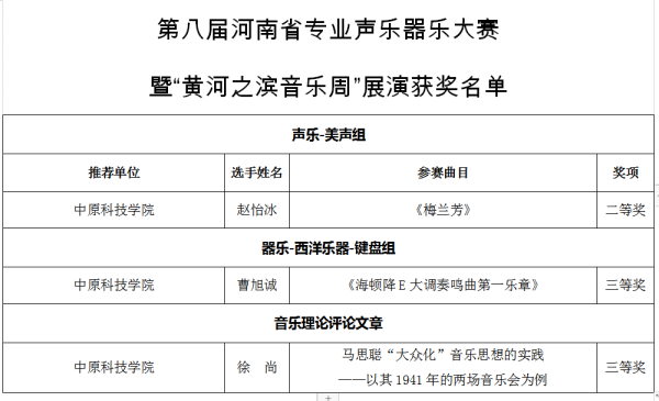 我校在第八届河南省专业声乐器乐大赛暨“黄河之滨音乐周”展演活动中荣获佳绩