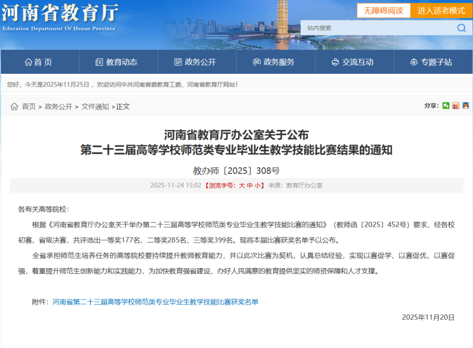喜报!我校在省高等学校师范生教学技能比赛中获佳绩
