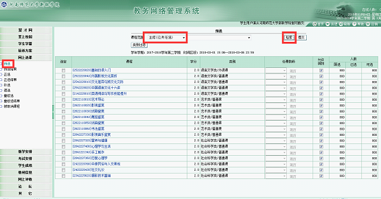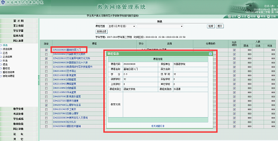 2.学生查看选课课程的时间为2019年3月5日09:00至2019年3月5日24:00。