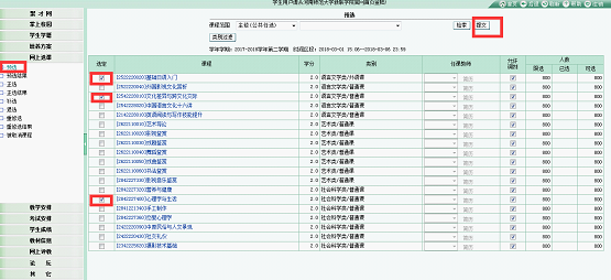 5.勾选课程前复选框(可多选),并提交,完成预选。