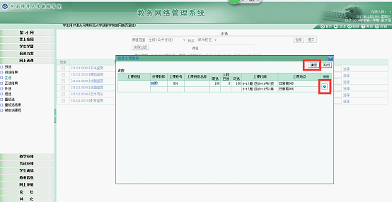 4.在要选择的课程后面点选择,弹出对话框后勾选此课程,并点击确定。