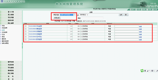 特别注意:自己不选修的课程不要选择,以免产生此课程无成绩并导致无法毕业等严重事情的发生。