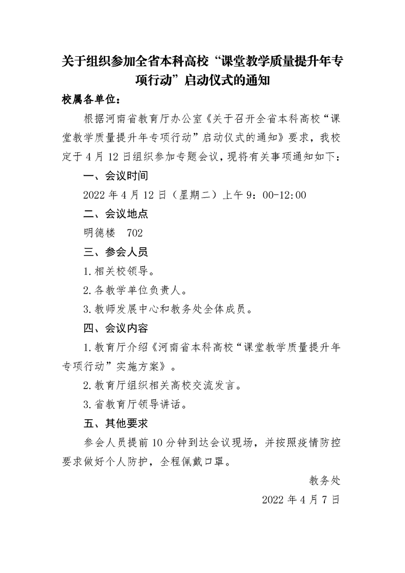 关于组织参加全省本科高校“课堂教学质量提升年专项行动”启动仪式的通知