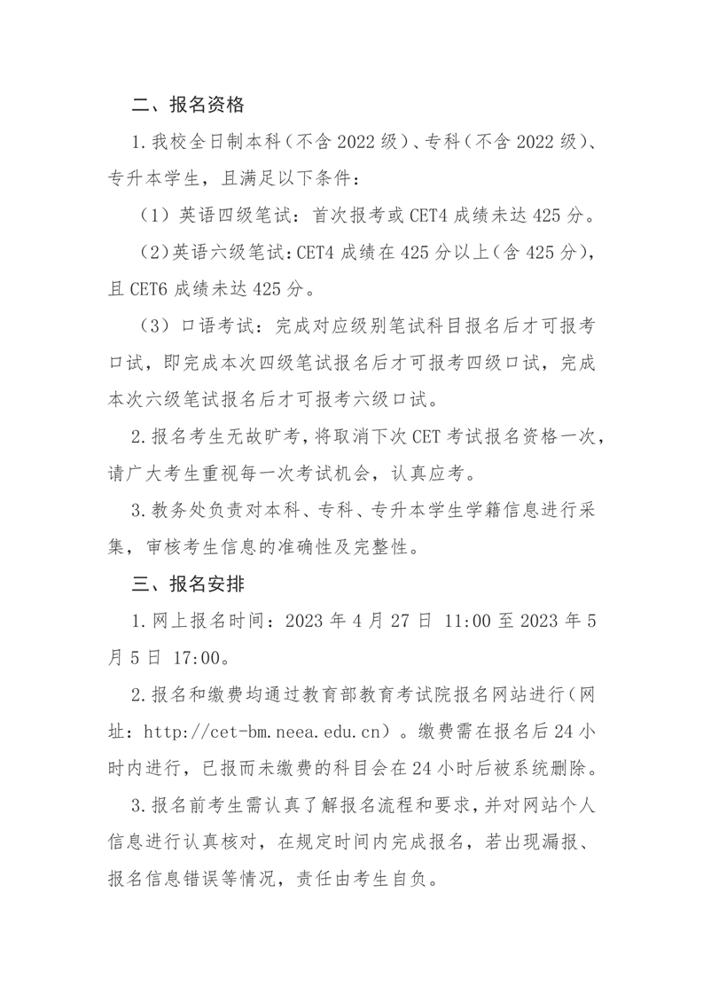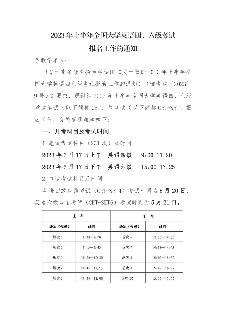 关于做好2023年上半年全国大学英语四、六级考试报名工作的通知