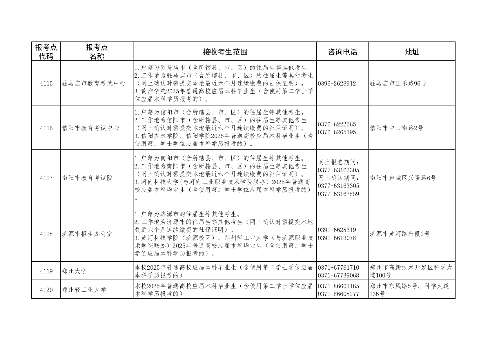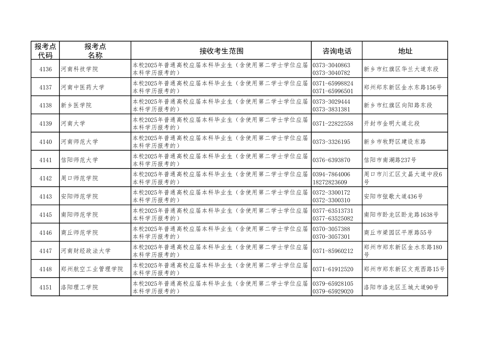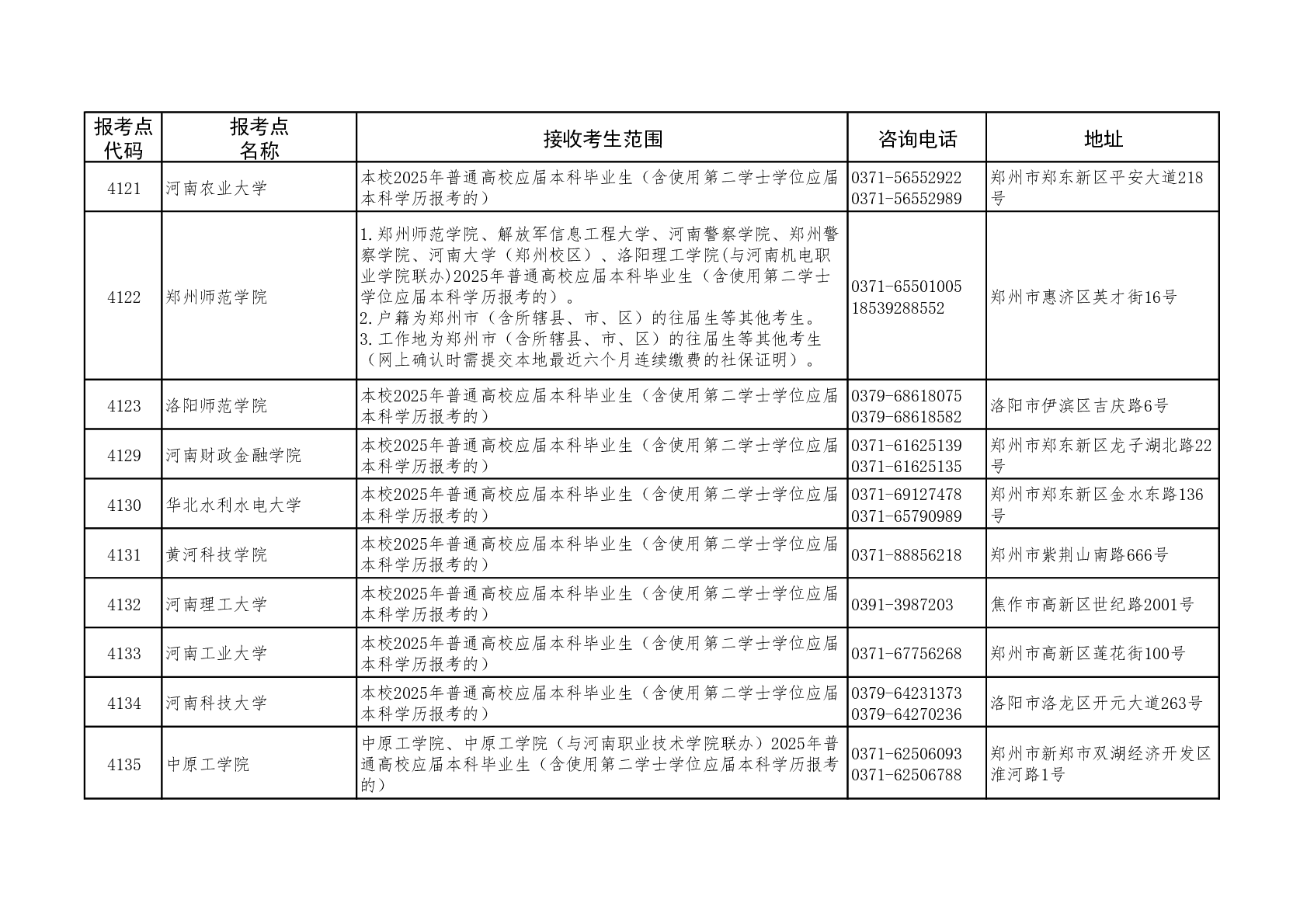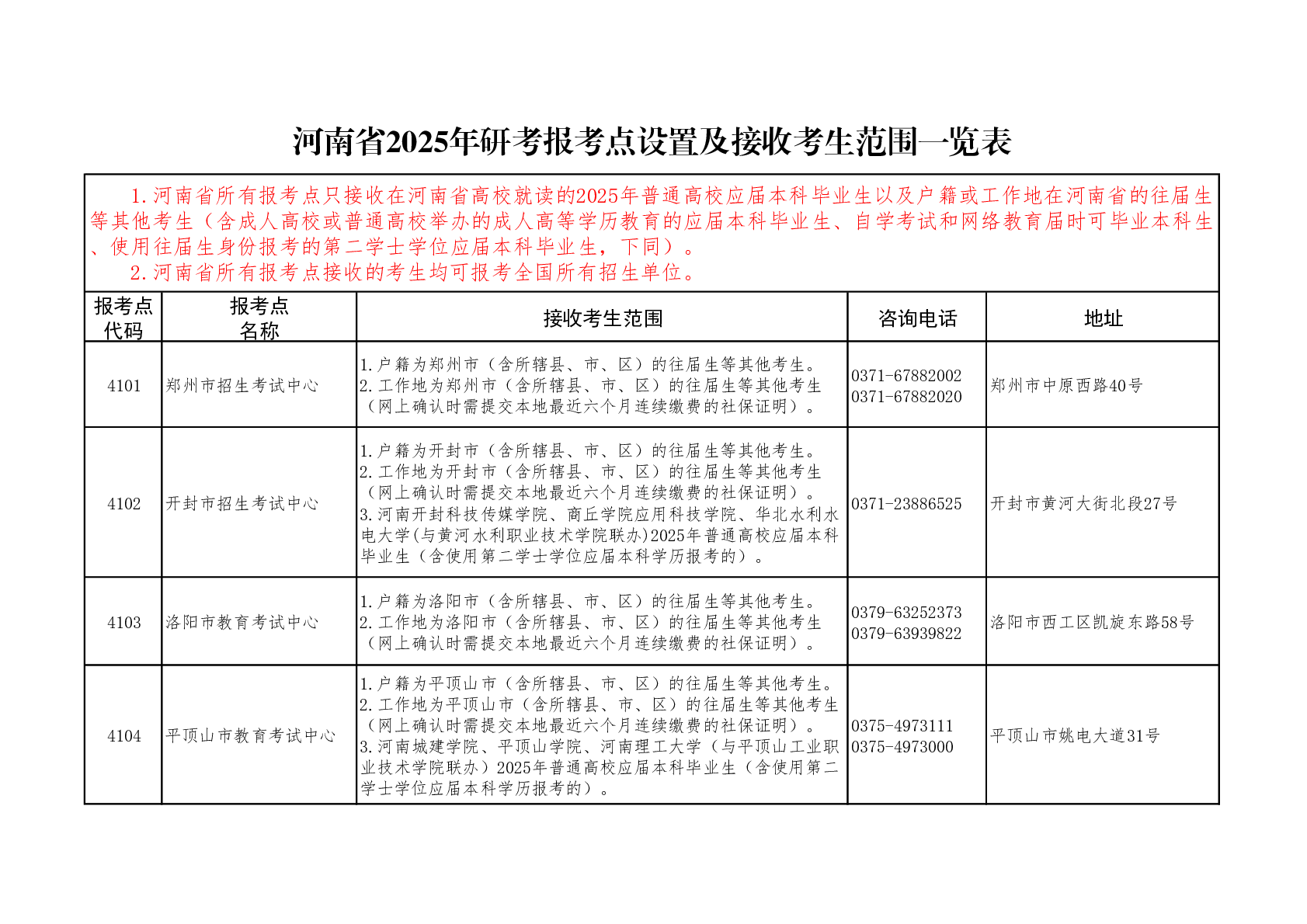《河南省2025年研考报考点设置及接收考生范围一览表》(1).pdf