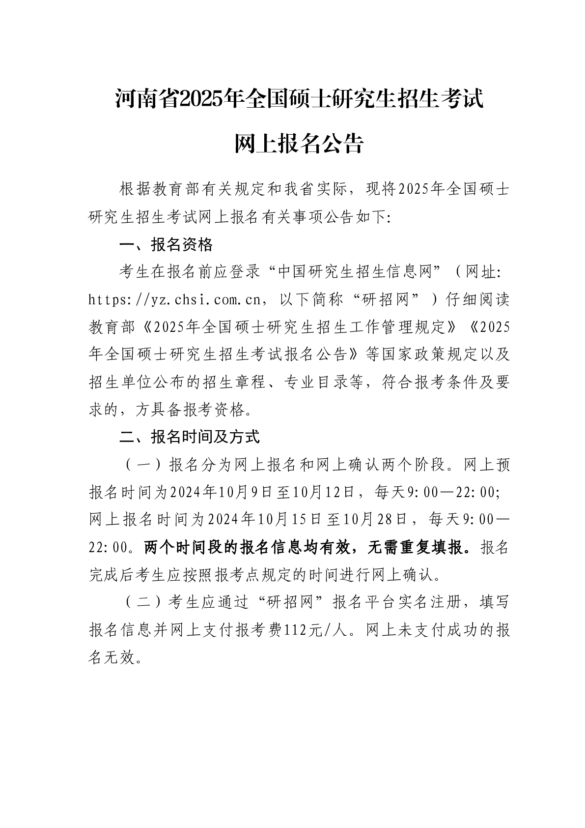 河南省2025年全国硕士研究生招生考试网上报名公告.pdf