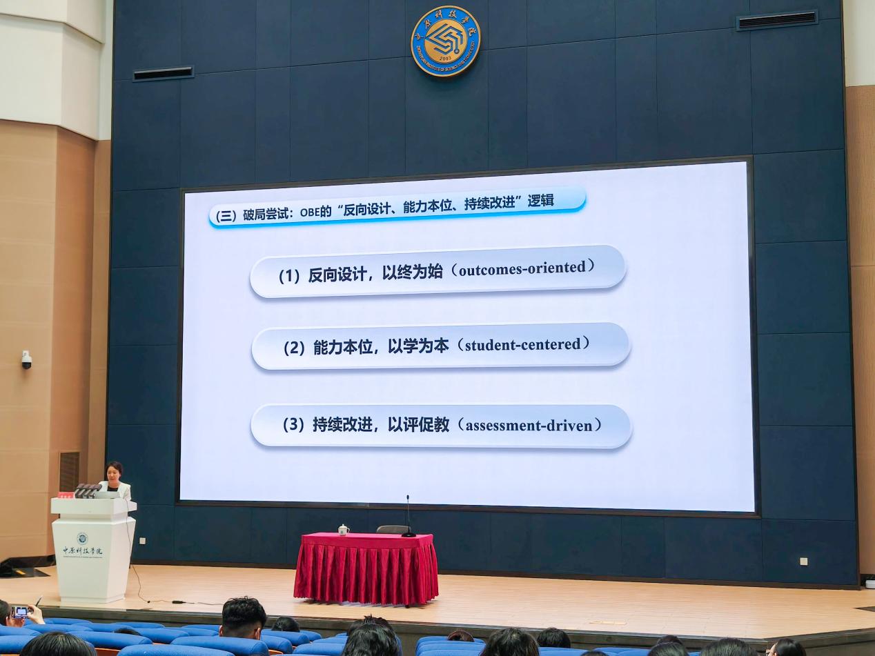 为深化教育教学改革,提升应用型人才培养质量,赋能教师课程建设能力,我校于2025年6月30日下午在卓越报告厅成功举办假期前教师培训会。本次培训特邀黄怡俐教授作题为“OBE视角下应用型课程建设”的专题报告,为全校教师带来一场理念前沿、内容翔实的教学能力提升盛宴。