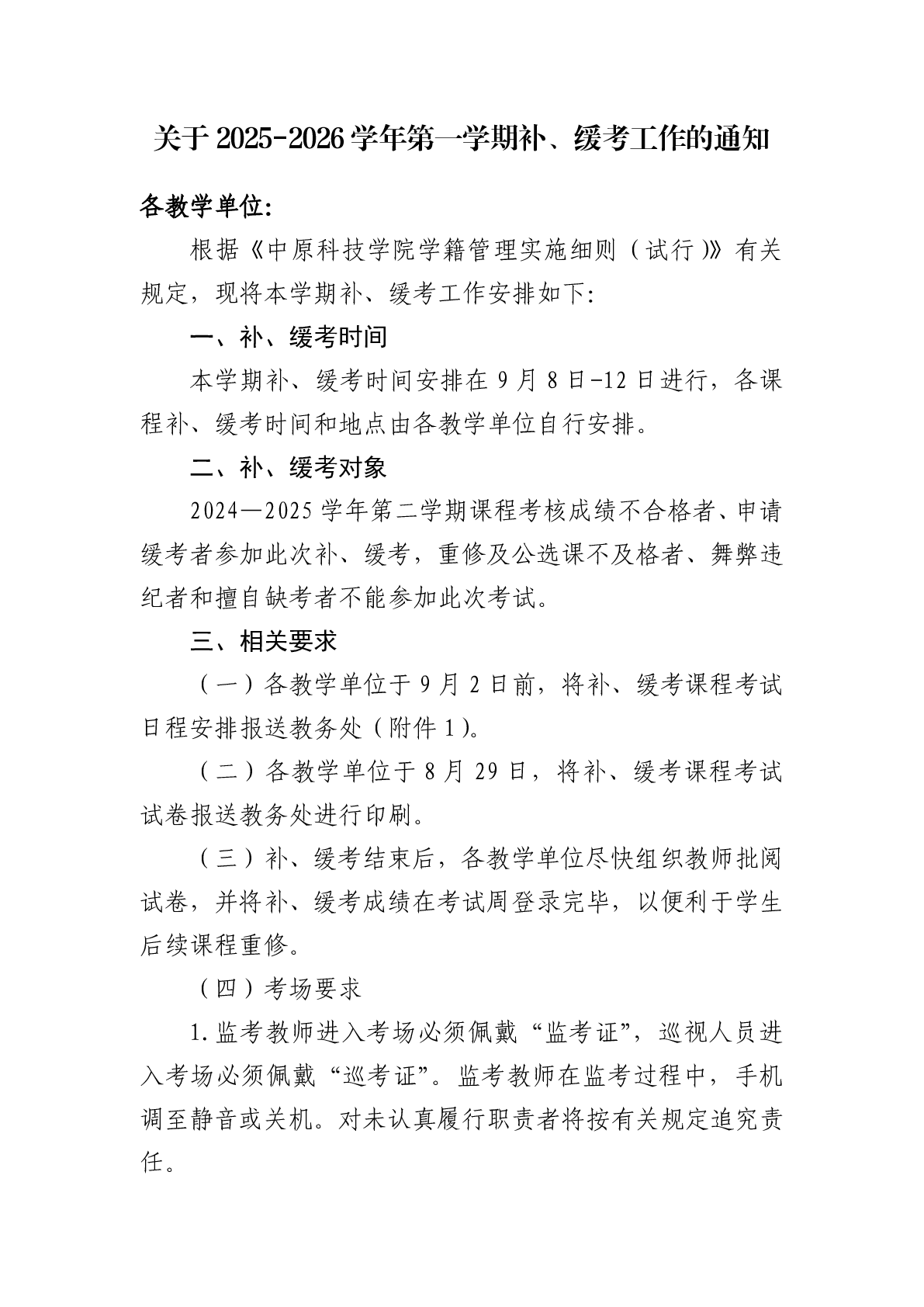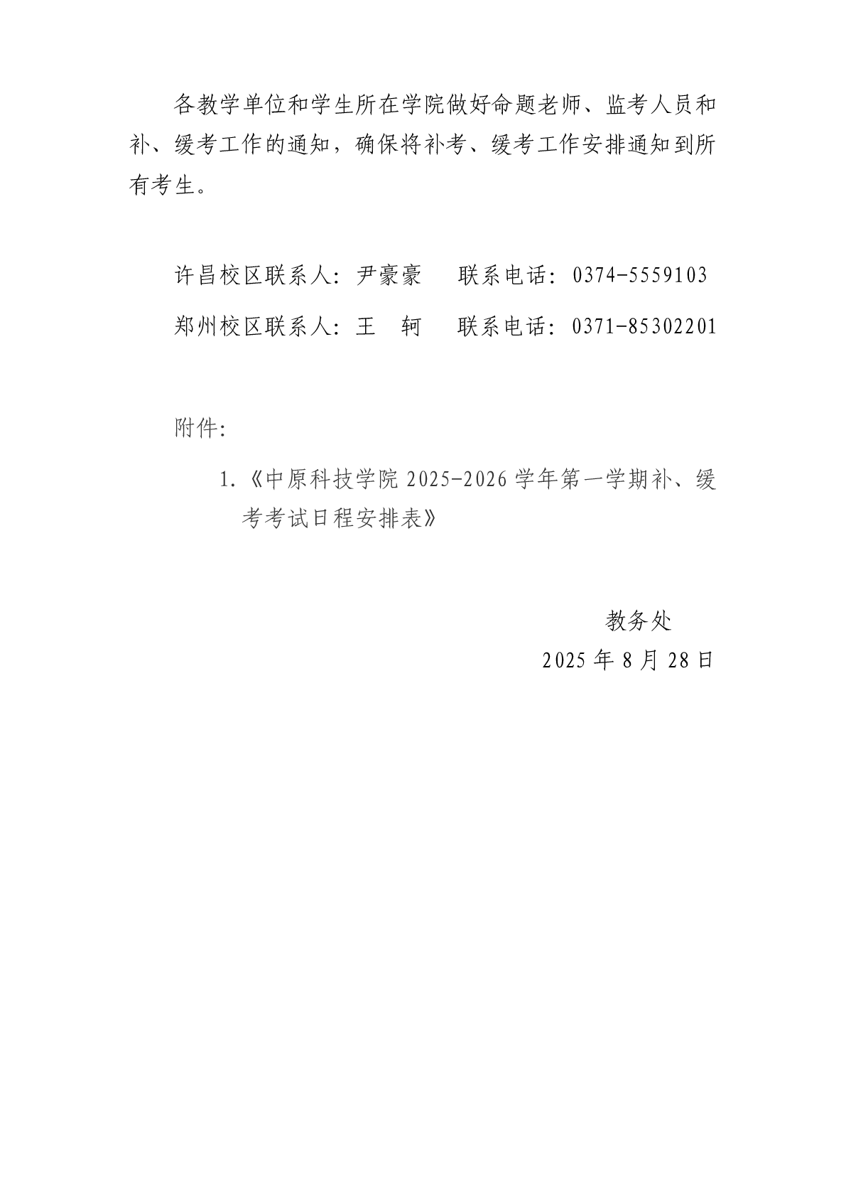 附件1:中原科技学院2025-2026学年第一学期补、缓考考试日程安排表.pdf