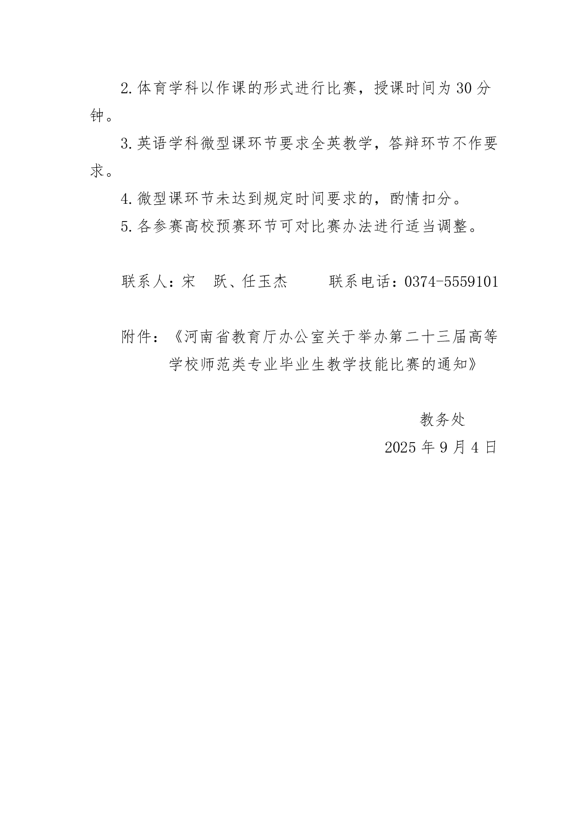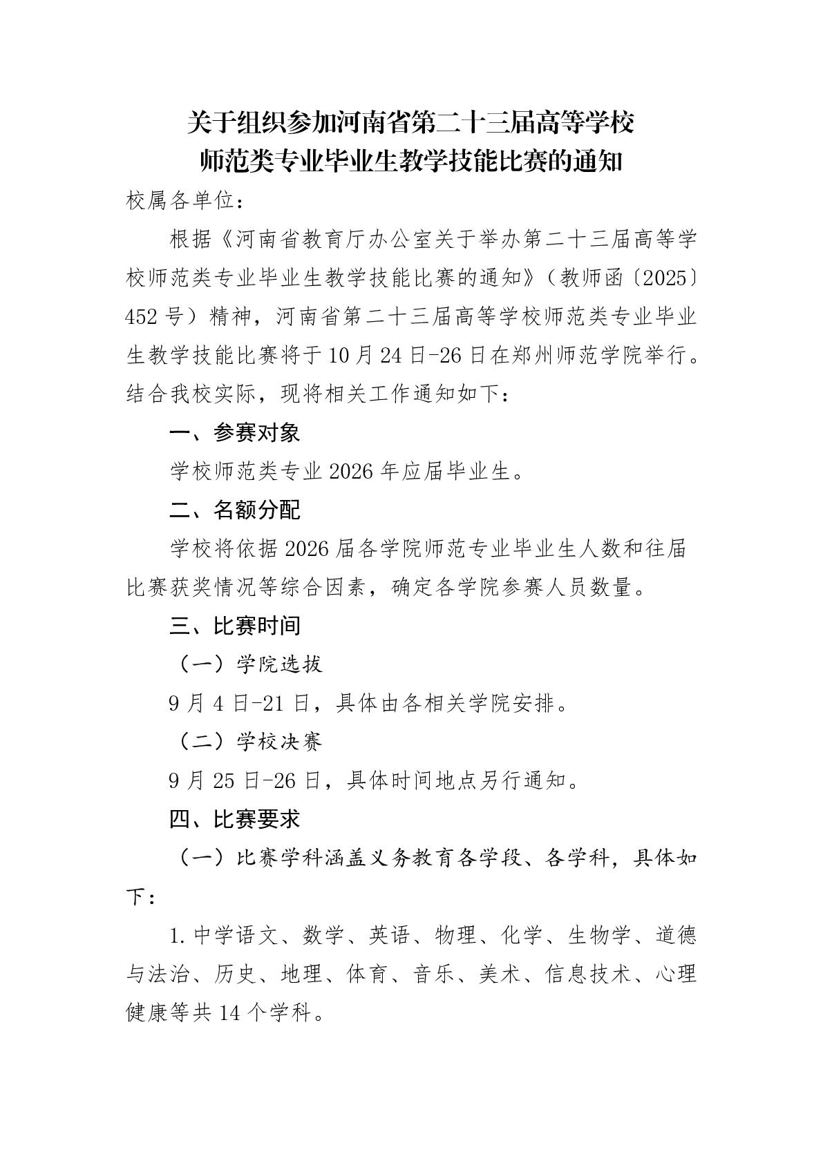 关于组织参加河南省第二十三届高等学校师范类专业毕业生教学技能比赛的通知