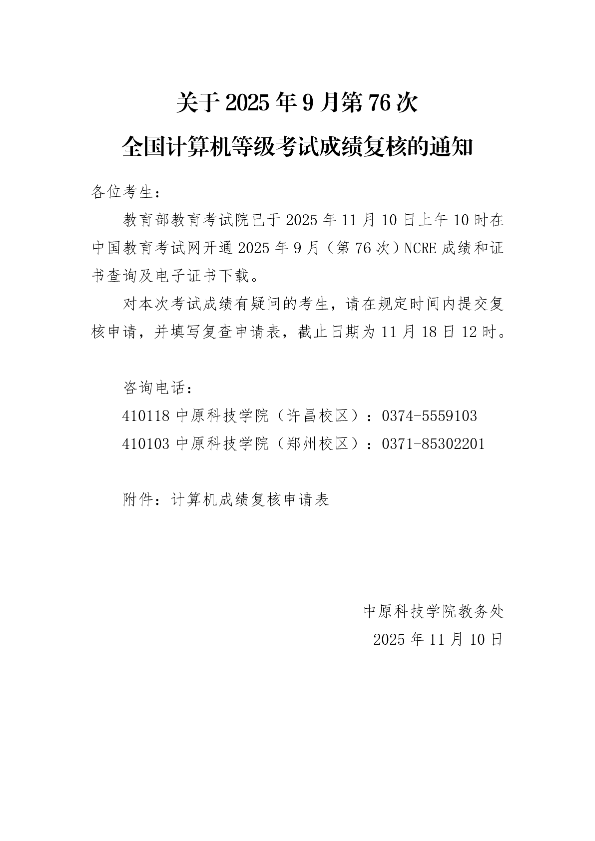 关于2025年9月第76次全国计算机等级考试成绩复核的通知.pdf