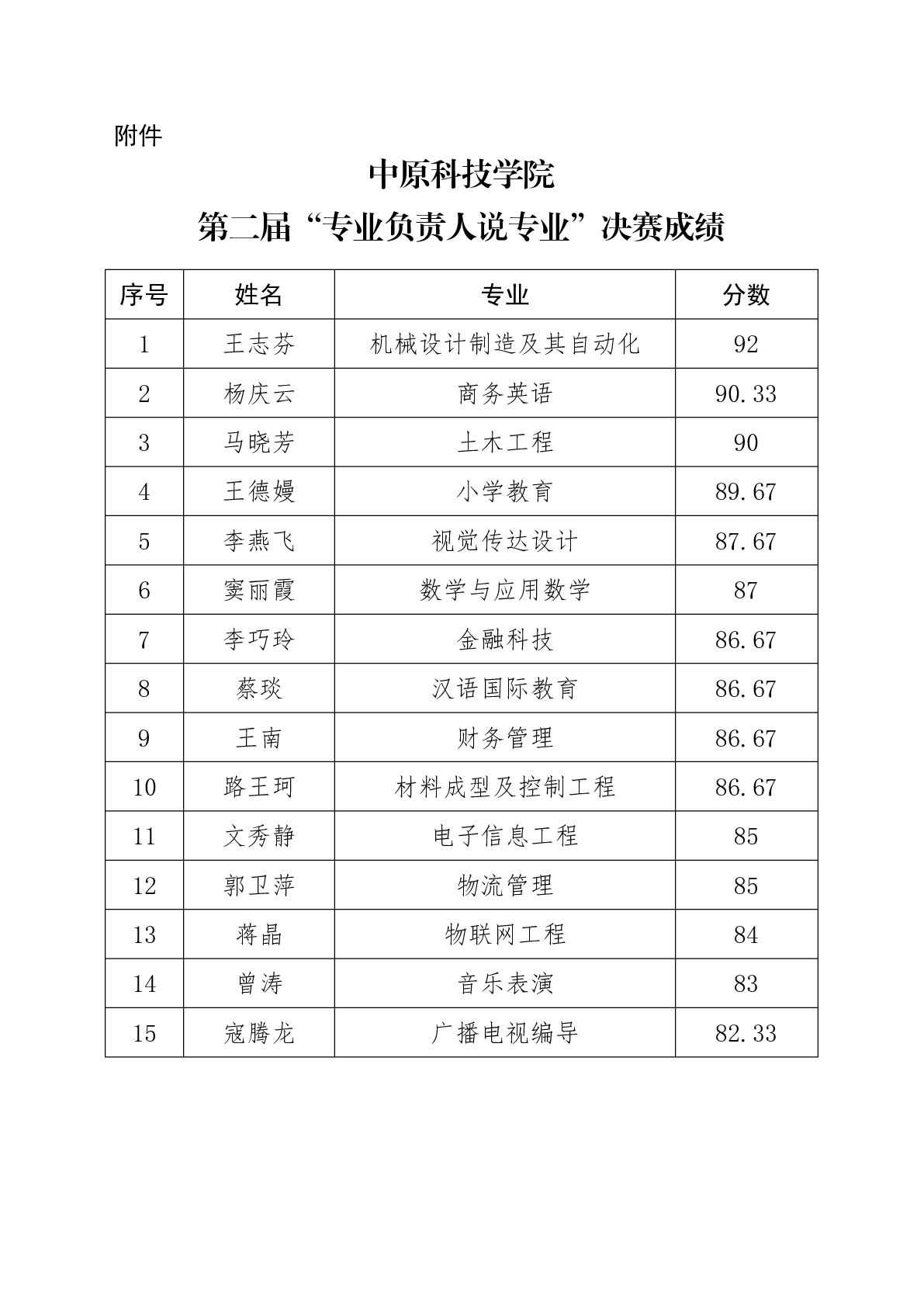 关于中原科技学院第二届专业负责人说专业决赛成绩的公示